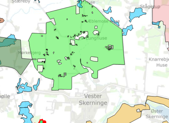 ![]() Dette område har den lokale trepart udpeget til potentiel skovrejsning, til sikring af drikkevandet. |